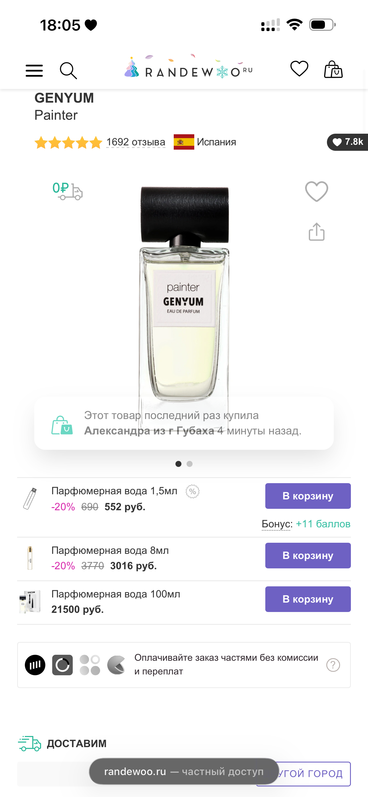 >>1957694 Вот один из нескольких проверенных 100% магазинов, где брал парфюм. Painter - 16к. Это буквально самый низкий ценник, поэтому выбор за тобой.