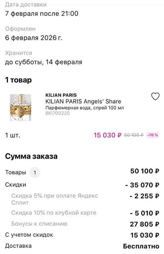 >>1959748 Не отменили, вчера забрал. Там вчера акцию включили списание до 70% баллами, которую уже убрали и как у них обычно бывает, забыли добавить в исключения Килиан. У них всегда так, это криворукие программисты. Недавно была акция 1+1 второй товар бесплатно. Так в ней можно было взять дешевый дезик за 1000 и вторым товаром парфюм, который выходил бесплатно. Но быстро пофиксили это.