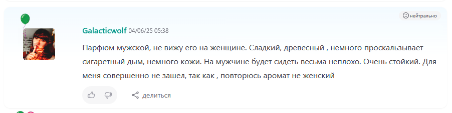 >На очереди конь Согласен, каловая штукенция, расхайпленная додстерами > усы (очень надеюсь) А вот тут стоямба. Усы охуенны как минимум одним своим флаконом. Я вообще обожаю рифленые флаконы как у тома форда, труссарди рифлессо, усов и тд - в них самый вайб такого олдскул/олдмани образа. Они стоят буквально хуйню и продавать их не резон вообще никакой. Это классный аромат, я рекомендую тебе дождаться весны и вернуться к нему еще раз, он действительно на совесть собран и, помимо охуенного флакона, выдает прекрасный запах. По цена/качество усы - это один из фаворитов рынка. Отставить продажу. Вернись к нему, как натренируешь нос.