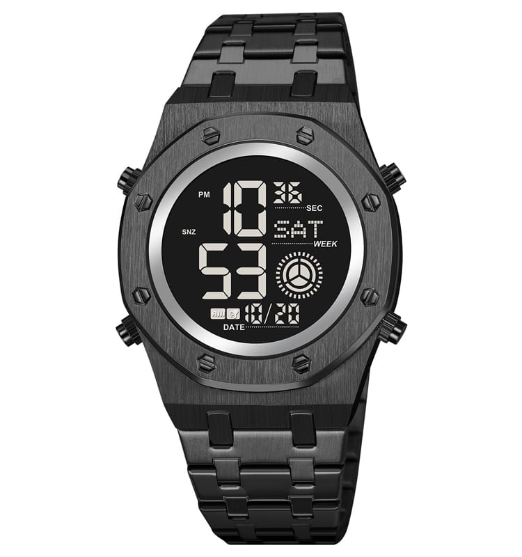 Кварц с wr100 и выше. Экран сугубо цифровой, стрелки = ненужная а главное хрупкая конструкция.