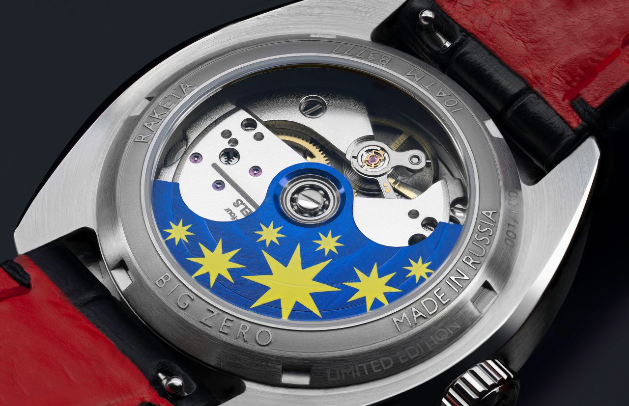 «Ракета» Big Zero в исполнении художницы Маши Янковской. Идея в основе дизайна: "время — субъективный внутренний опыт", так что важнее всего "Я". Секундная стрелка превратилась в звезду, отсылающую к картине «Звезда» из серии «Таро» (звезда — семнадцатый аркан, символизирующий надежду, вдохновение и исцеление).