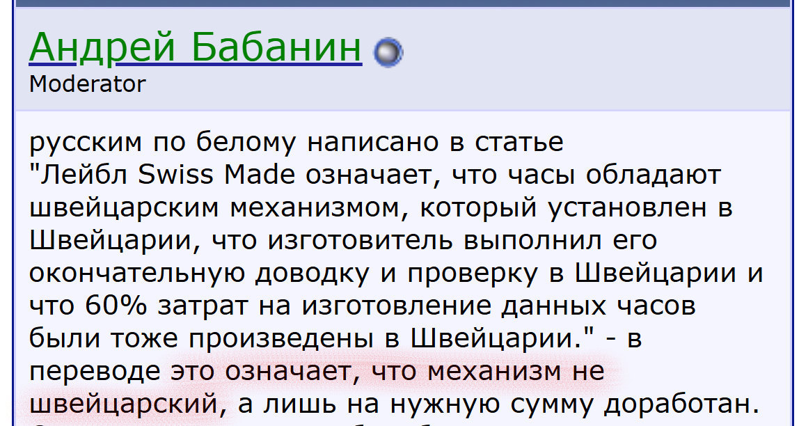 >Намекаешь на Китай? Но ведь у китайцов попадает Вот именно. Swiss made пишут когда хуй пойми где сделана гадость - попробуй найти страну производства того же лонгинеса.