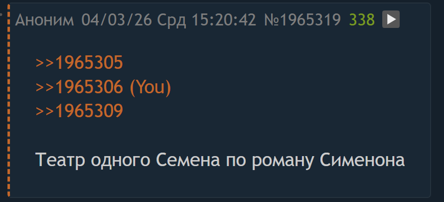 >>1965637 Здесь лучше не писать про то, что у кого-то есть женщина. Некоторых инцелов это дико триггерит из-за отсутствия у них секса на протяжении долгих лет. Сюда как-то залётная с тянача пришла, так перед ней инцелы начали расстилаться, тошно было читать