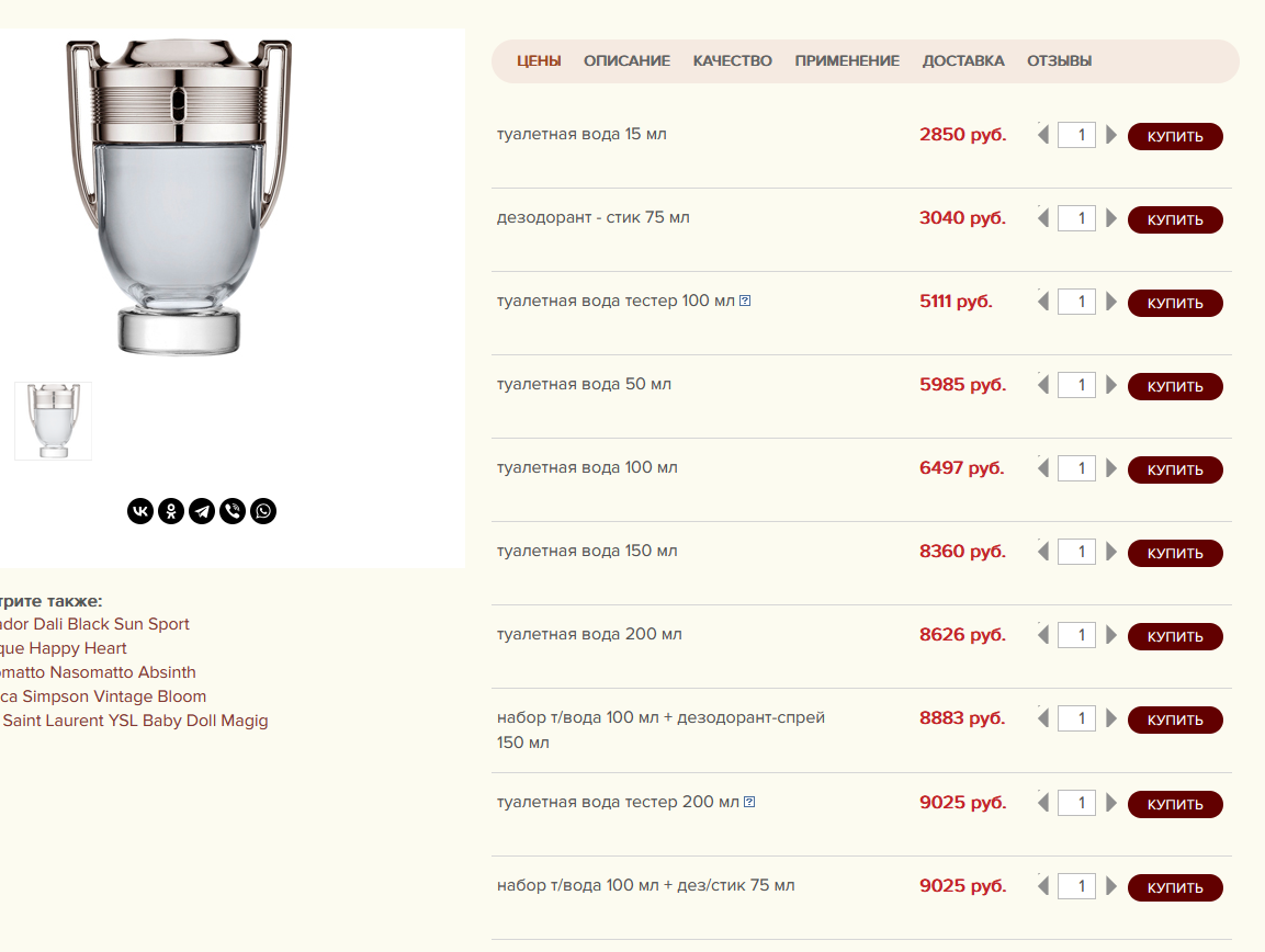 По своим мытарствам - для повседнева взял инвиктус парфюм, например, уж очень эта сладкая хуета зашла (да вот только флакон заканчивается). Вот я и на более свежие ароматы перехожу, взял Лакоста флакон учитывая стойкость уйдет быстро и думаю до кучи UOMO casual Life добрать от ferragamo, пока бонусы есть. При этом есть еще один флакон сладкой хрени Maboussine por Louie in red, иногда для разнообразия заменяю им инвиктус - выше писал что думал на ежеднев его взять, но не зашел. Итого у меня сейчас два флакона (один на 98% закончился), третий едет. Казуал лайф и еще пару тестовых ароматов едут в отливантах. При этом и бюджет не сильно страдает, и новое есть возможность затестить регулярно и на повседнев есть флаконы.