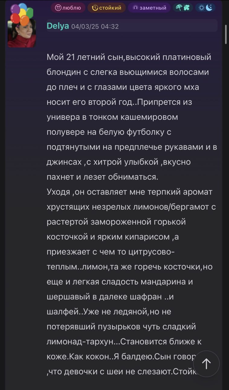 Дорогие аноны, весна вступает в свои права. Пришло время убрать на дальнюю полку тяжелую "кожу и табак", которыми вы грелись зимой. Весна требует свежести и динамики. Присмотритесь к чистым цитрусам, прозрачным древесным нотам или пряным фужерам. Аромат — это та деталь гардероба, которая слышна до того, как вас увидели. Пусть в этом сезоне ваш след будет не подавляющим, а бодрящим, как утренний кофе. Будьте свежи, будьте собой, будьте замечены. Обнял, приподнял.