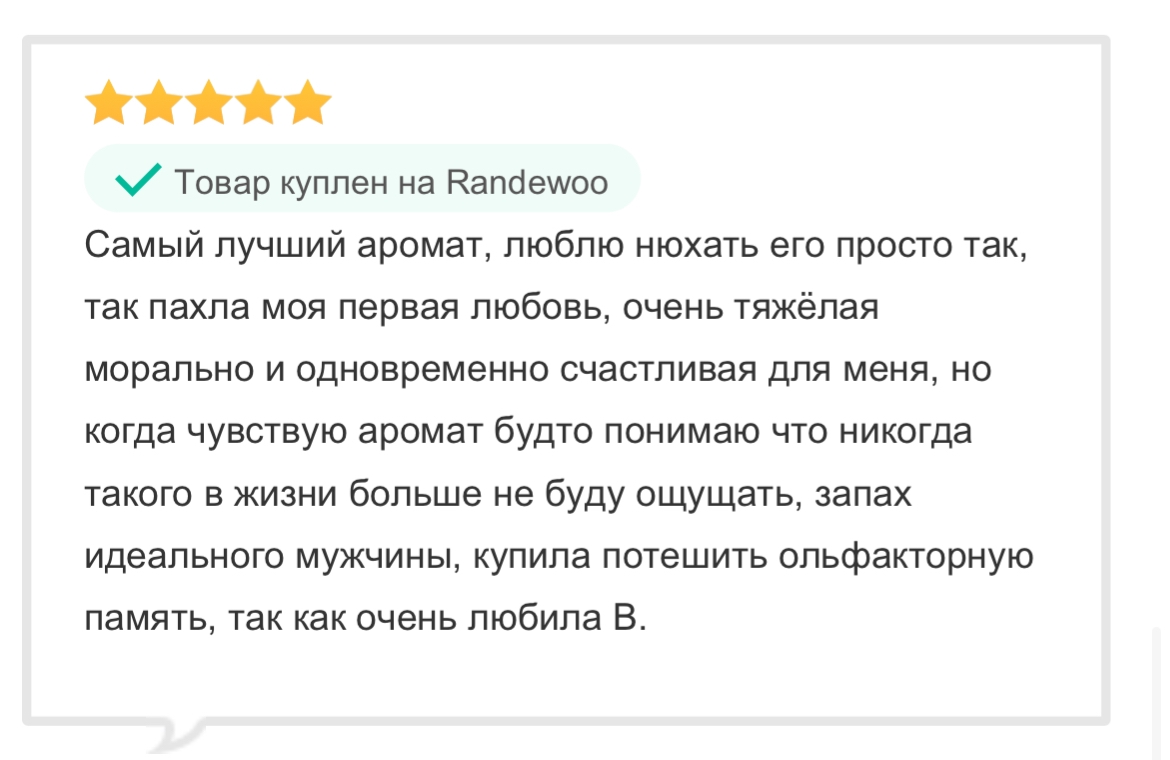 Меня здесь всегда радуют 2 события. Когда кто-то офлаконился (искренне радуюсь за анона) и когда есть история где фигурирует анон, парфюм и что-то интересное, но как правило это что-то связано с интимом, хотя не всегда. Во втором случае я тоже радуюсь за анона. Без пиздежа и лести. Искренне.