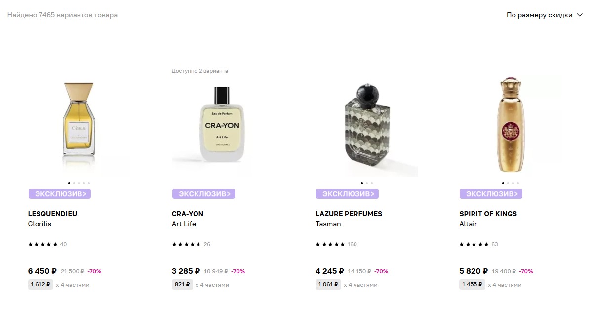 В Лэтуаль дорогие всратые бренды с большой скидкой продаются. Выберите раздел парфюмерии, выберите продавца только Лэтуаль, отсортируйте по размеру скидки. Цены на некоторое дешевле Складочной в 2 раза. Spirit of Kings например, но Matar у него весь разобрали. Это очень хороший дюп на Авентус старых первых выпусков.