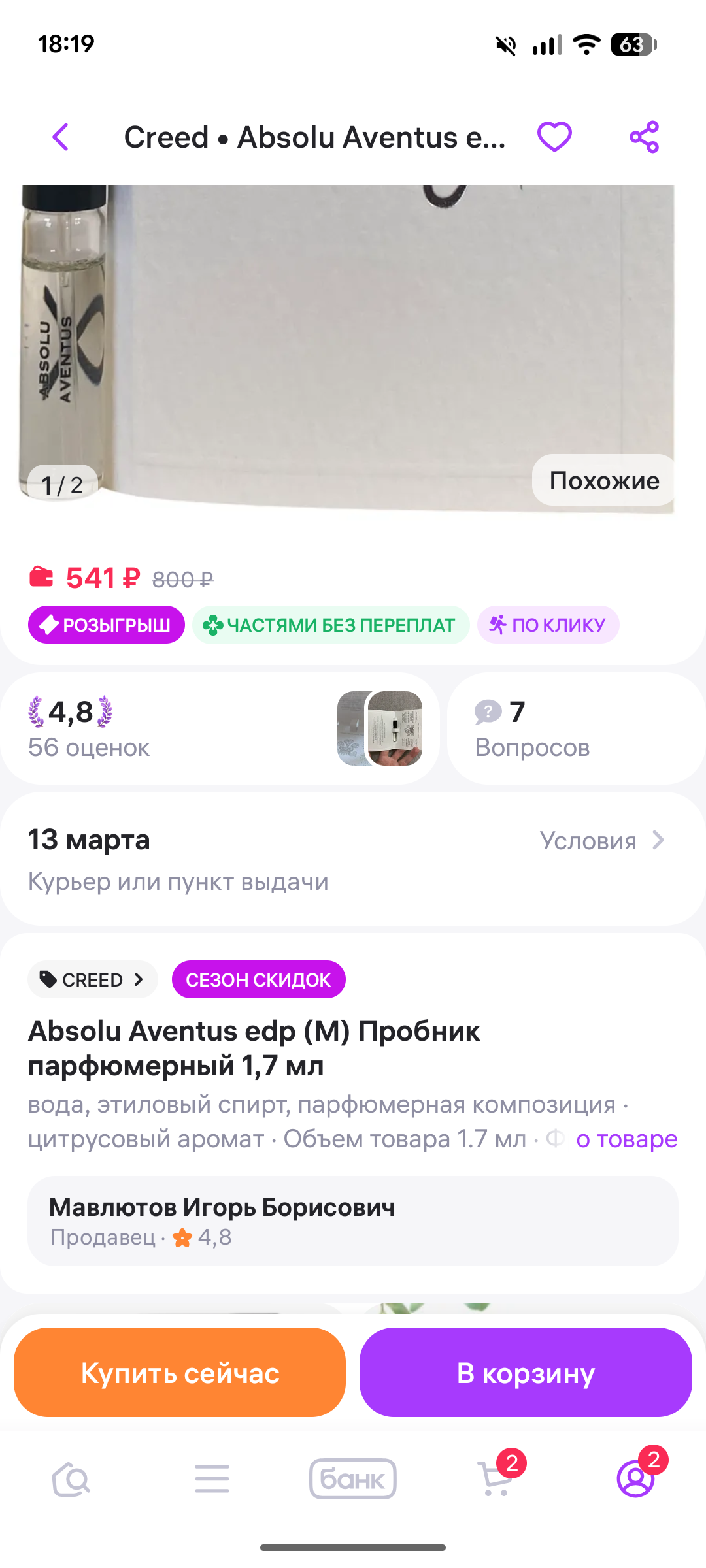 >>1965667 (OP) Сап, выбираю свой первый парфюм на лето для вылезаторства. Товарищ который и заинтересовал парфюмом и я решил в это дело вкатиться прислал парочку отливантов своих ароматов, заинетерсовал пикрил, прям очень понравился. Какой положняк в треде по этому аромату? На дисцентре всего 5к за 100мл