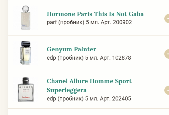 >>1965833 > Ты из тех шизов, которые берут парфюм не потому что он хороший Я давно знаком с этими брендами до всяких скидок. В треде про них писали, обсуждался и этот клон Авентуса, и Lesquendie, ты просто или нафаня, или не видел этого. Там еще куча других брендов по скидке 70, ты не гони, а перейди и посмотри. Это не всратые бренды, а малоизвестные и то только для не особо увлекающихся. Но у каждого есть как минимум 1-3 отличных аромата.