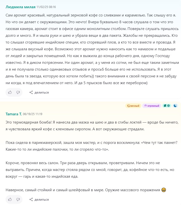 С lovers tale кстати какой-то прикол, может другие аноны тоже в курсе. Видимо есть разные выпуски - с аллюра у меня жижа очень густого красного цвета, прям кровища почти, очень сильно красит кожу даже, вот он мне в какой-то степени нравится. С Авито у меня отливант видимо с другого выпуска, там жижа более прозрачная и вот вроде запах тот же, но появляется какая-то нота говна и в целом в запахе больше кожи и меньше всех остальных приколов