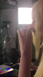 >>8284951Из-за штатива и особенностей стола и комнаты, вообще-то. Карина часто смотрит в камеру прямо.