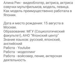 >>8355951Там нет ни одного слова неправды, а картинка - это её бывшее описание канала на ютубе, его она лично писала. Ты обоссан.