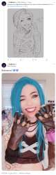 Ну Элла, которая озвучивала Джинкс в инетервью сказала, что не играла в Лигу Легенд, но вдохновлялось одной из коспелершей для Джинкс. Будем верить, что это ОНА! Если что, Элла 2 года назад озвучивала Аркану. Эмма вполне могла вдохновлять ее. Хотя это и не точно.