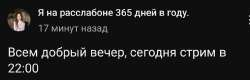 Пиздец у меня ломка от стримов. Мне даже похуй какой контент на них происходит и есть ли он вообще на них. Я просто подсел на её стримы и это с учётом того, что я слежу за ней аж с конца лета. Я на Ютубе больше нихуя не смотрю, кроме Мауре. И ведь сука не надоедает.