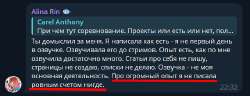 Лол ))) как же у тебя горит ))) забавно наблюдать ))) Эту инфу вы здесь впервые услышали. Так что не балаболь и в уши кисикам не ссы. ))) Её знает узкий круг лиц. Одна из моих целей была, чтоб Алина немного пятую точку напрягла ))) Она после сегодня прочитанного немного была в шоке ))) Уверяю вас. И к моим словам будет уже немножко серьезней относиться, хочет она того или нет. ))) Сейчас позавтракаю и пойду на тренировку. ))) Пока здоровье позволяет. )))