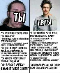 >>22599286 Платиновый вопрос ещё с десятых годов. Никто не знает, откуда у бомжа появляются неироничные фанаты и как вообще его можно всерьëз воспринимать, но такие сверхразумы существуют. Но, судя по вовамасу, гамоше, би-машине, масолу и тем, кто на сходки приходил - это такие же шизойдные затравленные омежки.