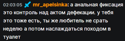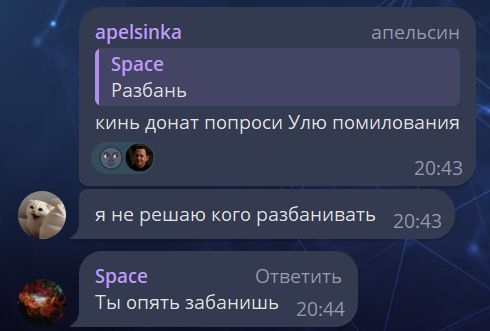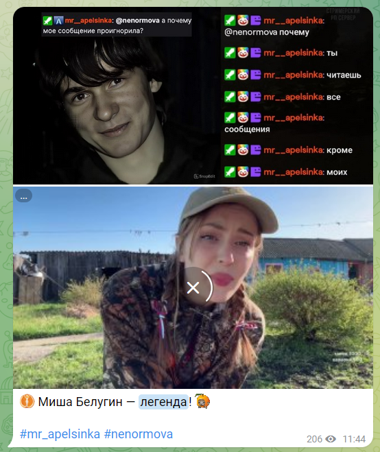 Смешно Люди идут на стримы, смотрят. Интересуются. Переходят в телегу. Натыкаются на подсосов, пиписинок и прочих блядей, которые ведут себя так, будто они не модеры - а владельцы Люди охуевают от такого расклада уходят на двач кекают с того, как апельсиновый хуесос перетаскивает одеяло на себя и на каждом стриме требует к себе внимания
