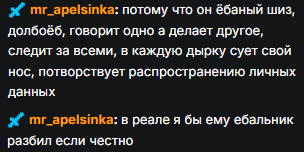 >>24693895 Аххаах, ты представляешь как чат должен лететь если 390 человек одновременно в него постят? Твичепидоры приучили людей думать что медленная скорость чата при цифре даже в 4К онлайна это норма. Я помню времена когда стримы только прикрутили к ютубу и ботов еще не было, так там трансляция митингов оккупай вол стрит собирала по 10К рыл реальных, чат летел со скоростью света, а теперь всем норм что у стримера по 5К онлайна а чат вполне читаем, разумеется без включенного слоу-мода. Самое смешное что все эти хуесосы до сих пор не поняли как же они палятся в опросах, где внезапно оказывается что реальный онлайн дай бог 20% от накрученного.