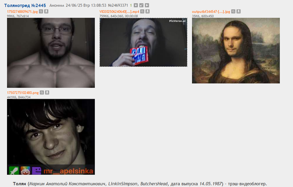>>24688974 Для таких как она есть тред и он называется Арчилэнд. Она точно такая же и ничем не лучше и в одном ряду стоит со стримершами Лали, Ниатепа, Мариночка, Лауния и другими. Благодаря данному треду Ульяны она имеет свои 50 онлайна, так бы давно скатилась на свои законные 15 зрителей. Ладно бы просто её постили иногда, но тут откровенно занимаются её форсом, причём явно не здоровыми людьми, плюс как от неё, так и от тех кто её форсит исходят оскорбления. Ульяна провела ей свет в будку и она имеет возможность стримить и зарабатывать, после чего открестилась от Ульяны. Хорошо, открестилась пусть идёт своей дорогой, но благодаря треду к ней приходят новые зрители. Её модеры засирают своей шизой тред, мешая нормальному общению. Она заслуживает быть изгнонной из данного треда, репортить посты с ней как шитпостинг спам и нерелейтед.