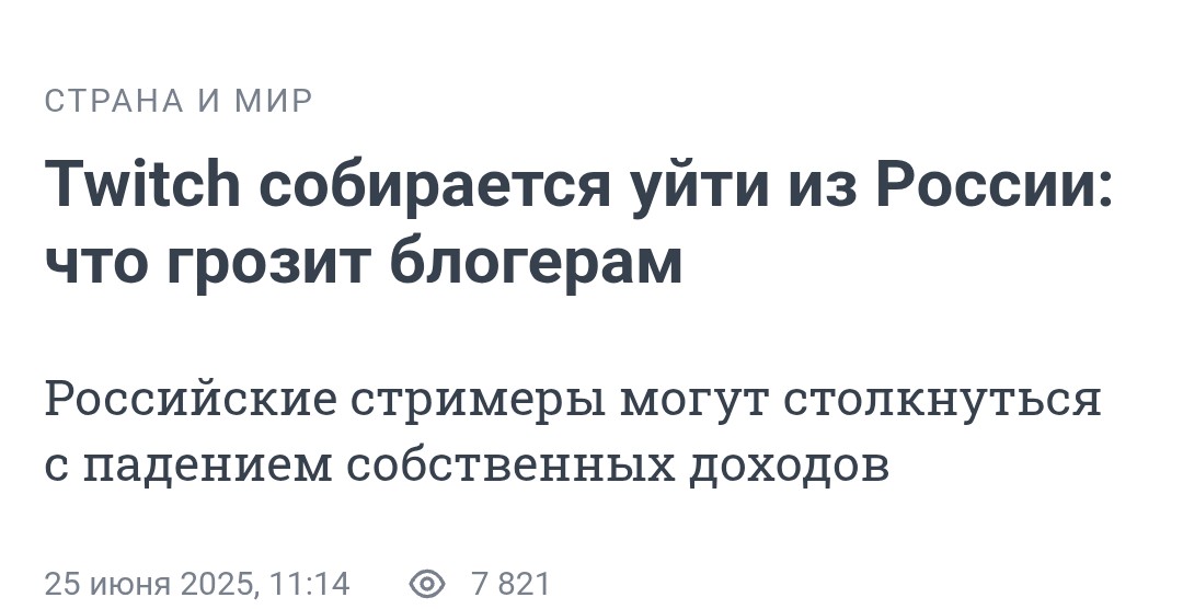 >>24703778 Высранная из пальца новость. Твич монетизацию для пидорашки отключил еще в 2022-м. Все доходы попрошаек это реклама в виде плашек на экране и донатики от оленей-зрителей. Так что куда куда там уходить собрался надо выяснять у полудурка-журналиста, с его кликбейтной парашей.