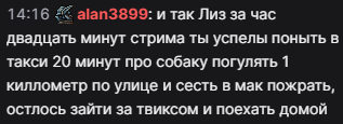 Галя, я выезжаю! Через 90 часов увидимся. Кстати сегодня сон снился. Смотрю я значит стрим Гали, а она такая говорит, что типо уже больше двух лет не отношениях и ржет такая и в чате все ржут. хз к чему это.