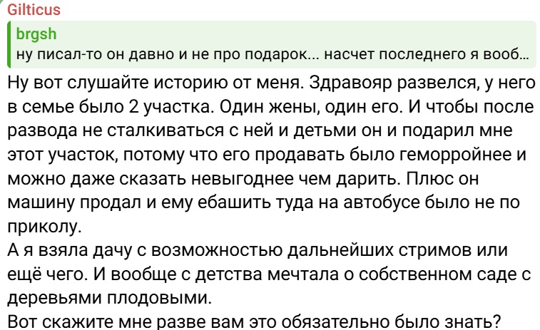 >>24707654 >Занюхи Гилти Главные занюхи это хуйтерки, это БАЗА Отсюда не понимаю, что им мешает спросить, возможно боятся увидеть как выглядит дача на самом деле и что кроме земли там все нужно к хуям убирать
