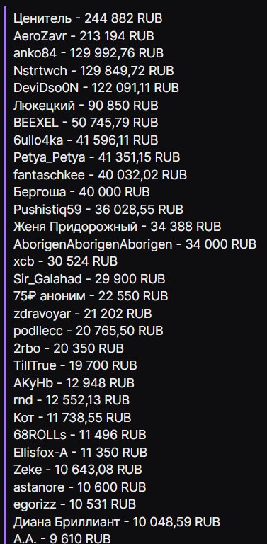 >>24707629 Я не смотрел вчерашний стрим. Про 3 ляма писали аноны, я это не утверждаю. Но если у тебя тряска и отрицалово, спроси лучше сам, чтобы самолично убедиться и закрыть вопрос.