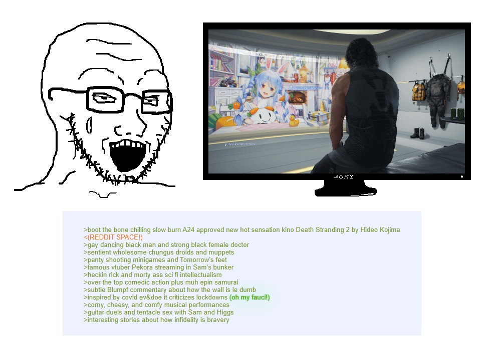 >>24728640 Тупым американцам не понять всей глубины, для них это просто дефолтный слоп которым кормят зоотечественников, а у кодзимы 80-летний стокгольский синдром, он америбу до мозга костей почти как Илюха, в мгс даже был персонаж полуяпонец полуамериканец которого зовут макдонелл и он готовит бургеры. В этом и есть искусство.