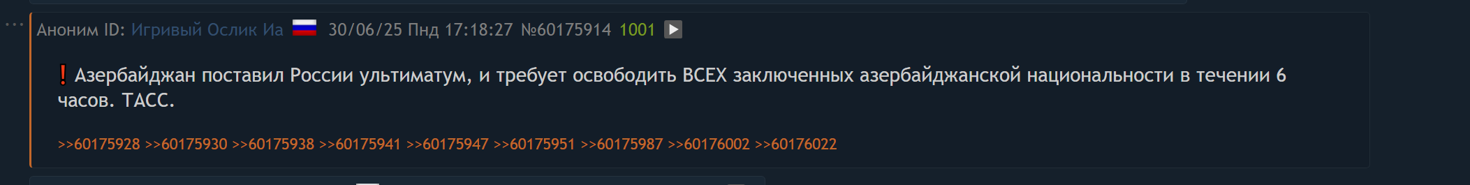 >>24728465 это не кат, это другой тред и странна что ваш тред сразу начался с 11293 номера, если хочешь создать новый тред начинай с 1 на скорее всего твой тред потрут и тебе дадут банчик