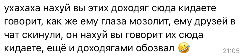 >>24856245 дадада, в рофл говорит что хочет онли чат подсосов и чат без любого негатива)))) чисто по рофлу))) чисто по рофлу разбан 300 рублей))))) сначала баним потом за бабки разбаниваем))))
