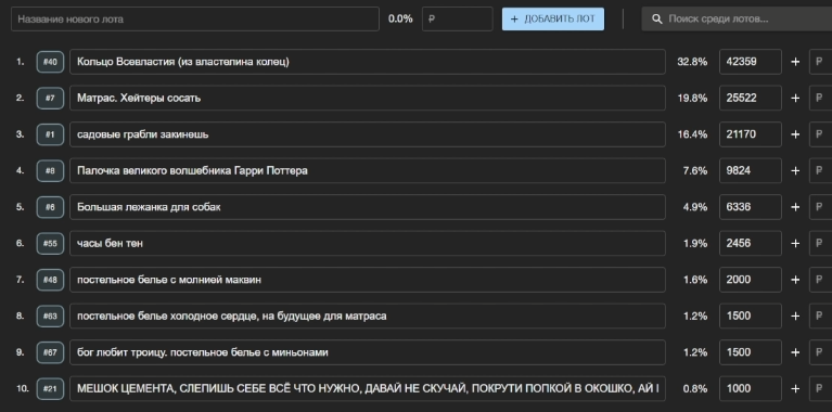 Если это не отмыв, тогда точно схема такая: донатеры донатят на плохие варианты (условно купить гнома или шахматы), владхуйс донатит на хорошие варианты (диван, подушка), чтобы был ажиотаж. И так по кругу.