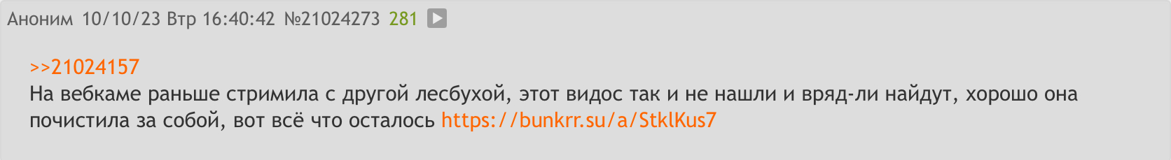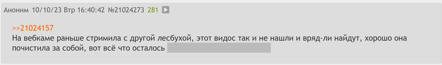 >>24899035 Ты же вкурсе что она вебкамщица и даже с бабой сосалась перед монитором это жырный намек что ты очень много не знаешь, а ты про какогото чела