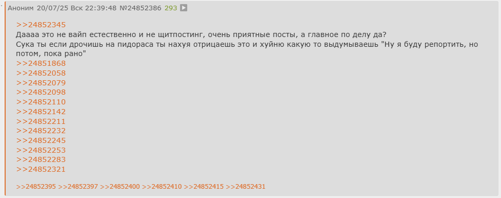 > схуя ли я должен репортить ещё и хамитова Ну собственно вот и ответ Пол треда засрано пидарасом - крутой контент, реально годные посты Пол треда засрано ненормой - БЛЯЯЯ РЕПОРТ ОБХОД БАНА ВАЙП РЯЯЯЯЯ
