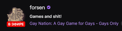>>24857741 Дебич, ты кого пытаешься газлайтить нахуй? Это дефолт плашка для игр, которых нет на твиче. Тут половина треда его стримы по хс смотрело в 2к14