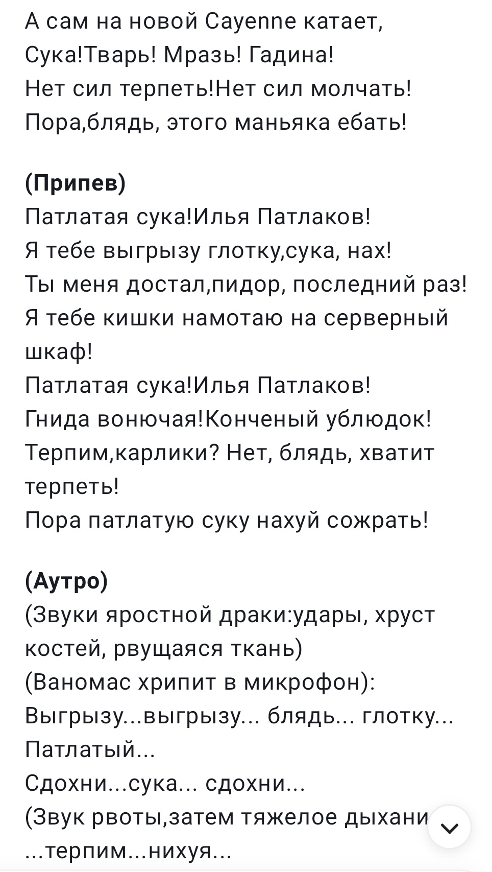 эт хуйня кста. ваномас уже полумёртвый и скуфанулся жестко. а он как раз симпил долго по шпачихе. он просто ультра-слабый, низкое, практически нулевое тесто(у него даже волосы на теле не растут) а тнус таких сразу подсознательно вычисляют и уничтожают. его даже на арене рандомные стримерки типа эльзы севенс попускали. у баб безотказно работающая прошивка уничтожать слабых самцов, чтобы передавались только лучшие гены. физически они убить не могут т.к. слабее потому доводят до суицида ментальной давкой, либо натравливают на них более сильных самцов. те олени которые будучи слабыми умудрились влезть в брак кончают так же, в петле или топятся в алкашке. толян таже история, отрицательно тесто и кандидат на уничтожение но он ни к 1 бабе не приближался за жизнь. потому и остался наивным шизо-дурачком и выглядит не так жестко постаревшим. а вот патлая бабка с арены чисто примат, потому и ваномаса попускал и жену выдерживает. но даже по нему видно как уходят силы. =нение=