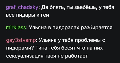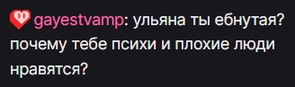 >>24923791 Сходил в стрипуху когда с Серегой и Лаской бухали, мариночки видимо не понравилось, отфоловилась от него, бухтят чет на стримах друг на друга