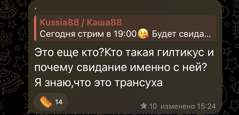Еблан, слушай стрим дальше и смотри телегу Руслана, там фотки, в том числе с Кашей