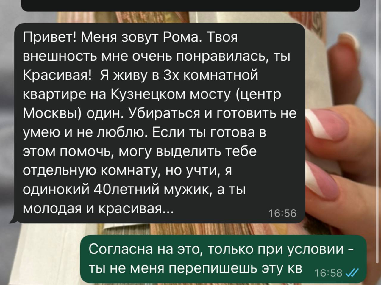 Ситуация 50/50 съем квартиры - женщина чувствует, хоть какой-то вес на данной территории. Приходится договариваться с ней по ряду вопросов, возможно жить по каким-то ее правилам.