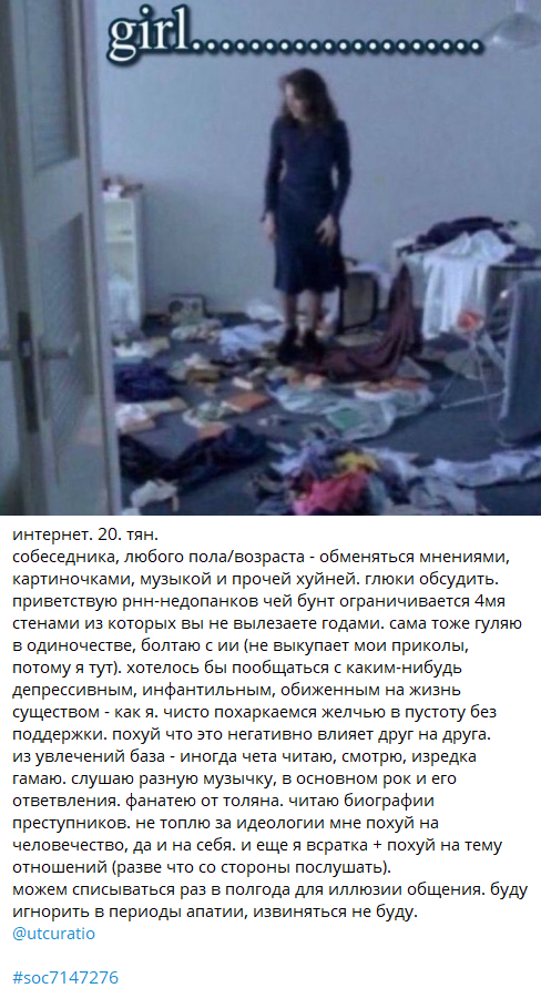 >Жендос Вообще меня не Женя зовут 🤣 Женя зовут девчонку соулмейточку двачерку асексуалку шизуху деревенскую, которая меня загостила 😑 (на пике анкета) Я ее пришел в тред искать в декабре, потому что она фанаткой Толяна была. Но ее тут не оказалось.. 😑 изначально Женясос вроде назвали. Мои кринж поиски и до андера докатились, причем она читала его паблик, на следующий день ее акк был удален в тг, но с другой стороны прошел ровно месяц с тех пор как она замолчала и возможно просто автоудаление аккаунта было на месяц поставлено. Она параноик тот еще. Мож суициднулась, у нее проблемы с башкой серьезные были. Но теперь уже никогда не узнаю. До сих пор жалко, привязываюсь я к людям, когда они добры ко мне.