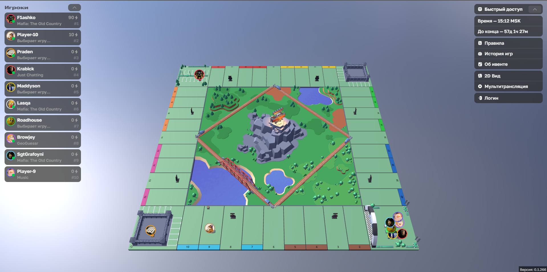 Список участников ивента "Игрополиус" который начнётся 15 августа: 1. Praden 2. Maddyson 3. Lasqa 4. Roadhouse 5. F1ashko 6. Browjey 7. SgtGrafoyni 8. Krabick