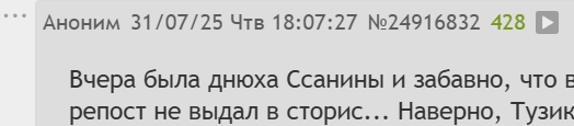 >>24975150 Она не по этой причине знает, а пушто своими глазами видела уже жирный троллинг ее от них, да и всяких сливов тоже прям дохуя в инете и шестерки ее об этом часто писали в самом начале, когда хайп был, а она типа случайно в это время выходила из чата и якобы нихера не читала, хотя сто пудов все видела)) И она конкретно живёт с ним, не могла не знать и не сопоставить, когда его не было дома с ночевкой много раз именно в моменты приезда Леона и он ей нихуя не говорил так-то лол, особенно когда сильно удивилась, когда они там спшной тусой в кафешке сидели и он опять домой ночевать не пришел 2й день подряд (жаль они старый чат снесли, там столько архивов важных было, где она все палила почти каждый день, где он и как долго его нет и что ни разу не сказал куда пошел то на несколько дней пхаххахах! надеюсь, он хотя бы трусы себе запасные берет в периоды блядок)