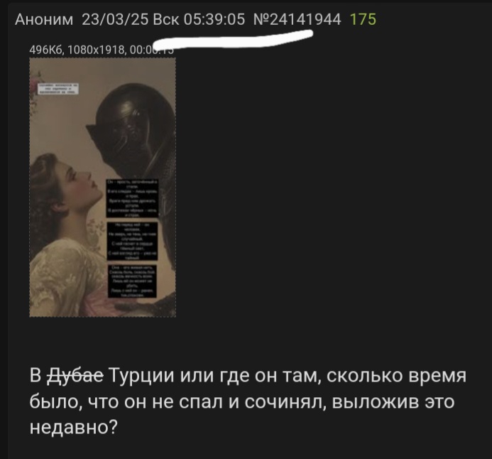 >>24958033 Кстати! Это ещё было и знаменательно тем, что это ПЕРВЫЙ за время их пост с друг другом, где они были только вдвоем/без свидетелей и надзирателей/не по работе/не реклама/не связано с СП/не еще что-то общее, а такой чисто аля ✌️дружеский✌️личный кружок без принуждения, а по наитию, как они его делали с другими, но только не с друг другом всегда раньше))) Это шо бля, ретроградный меркурий? С чего они вдруг так любезно расчехлились? Аттракцион неслыханной щедрости? Так что можно сказать, с почином их! 🎉🥳