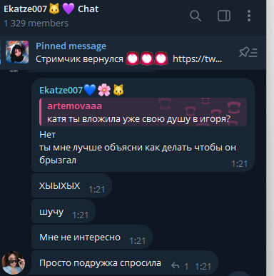 >>24977125 В беседу тг скинула и удалила через минуту , ее там всякие 18+ штуки поприсылали по типу чулочков и секс костюмчиков ( походу готовиться лететь в Варшаву )
