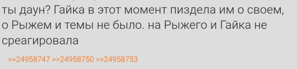 >>24985842 >>24985874 верю ХАХАХА. ты же в люблен в него по уши, иначе бы тебе было похуй, что тут про Рыжего выписывают, даун ты тупорылый. думаешь не видно как ты страдаешь по Рыжему с пеной у рта его защищаешь, как будто тут твою родную мать обсуждают