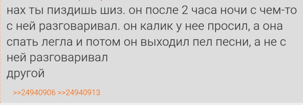 >>24985807 >. если бы любил как ты бы Но я в отличии тебя не смотрю абсолютно каждый его стрим, не знаю абсолютно каждую сказанную фразу как на его стриме, так и про него на чужом, я не выписываю про него десятки постов ежедневно, меня гайка не называла сыном бляди с жирной матерью шлюхой, ДУМАЙ