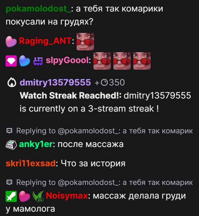 Есть мнение, что Женечка окуклилась, чтобы не притянули за пропаганду, а не потому, что ей чото-там стремно обсуждать. Ну бы ебнутые, ей и стремно/неприятно? После нескольких лет такого вот общения на стримах???