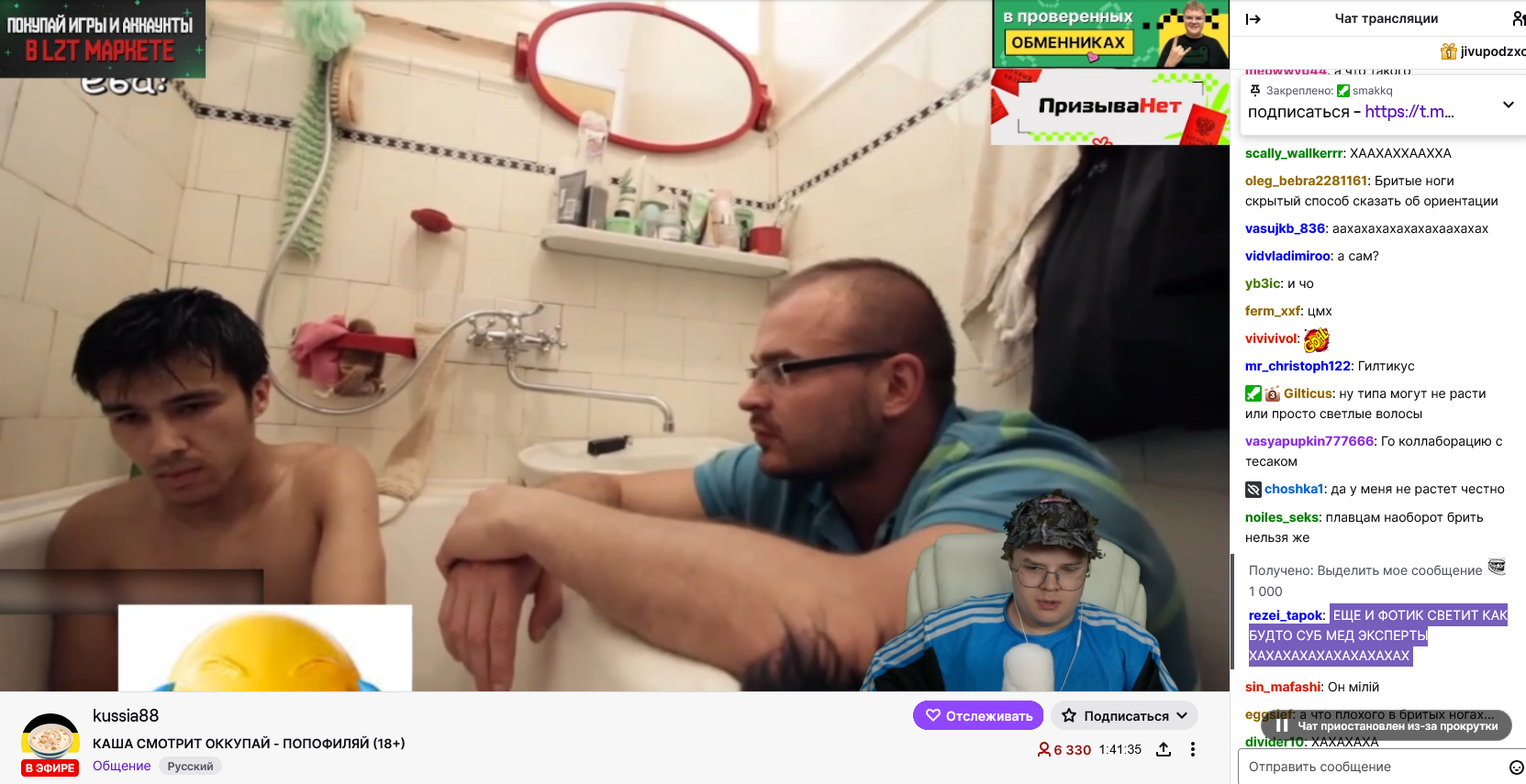 >>25000629 Я посмотрел стрим, это реально нацистский выродок, чередующий в названиях 14 и 88, и постоянно смотрящий на стримах борцов за белую расу, и это все на аудиторию в 7-8 тысяч, флага рейха там нет только по причине того что на твиче стримит. Ваще хз как бутылка мимо пролетела, тоже покровители в верхах? Мизулина дважды возбуждалась и дважды послана на хуй была, в то время как за какой-нибудь танец в тик-токе у Мамаева Кургана запросто могут штраф за оправдание нацизма дать.