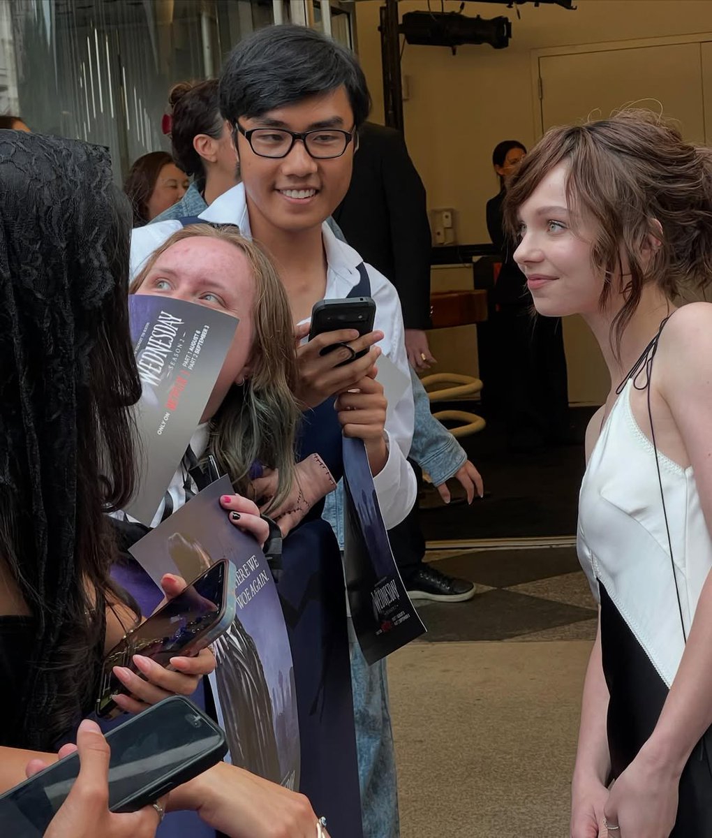 Ортега: Но мы увиделись только один раз! Так что, когда мы прибыли в Ирландию, чтобы снимать «Уэнсдэй», было приятно наконец увидеться.