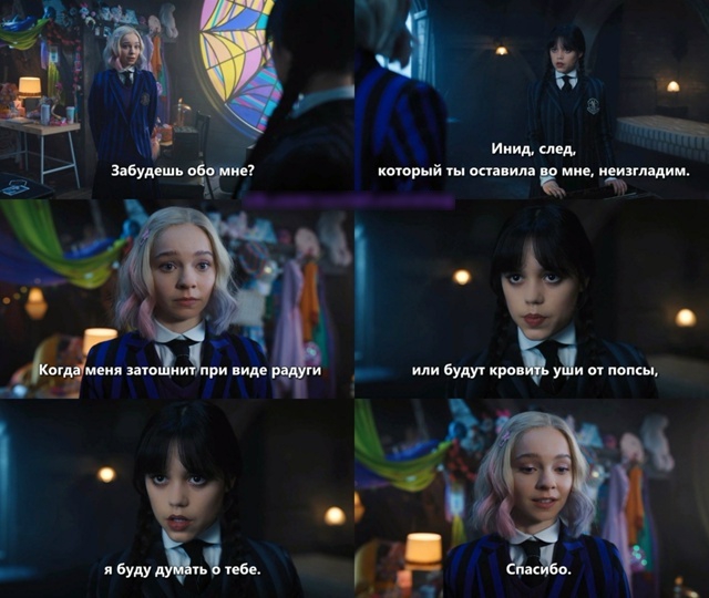 Майерс: Я чувствую, что ты больше похожа на Уэнсдэй, чем я на Энид. Мы говорим об этом уже много лет, и это всё ещё правда.