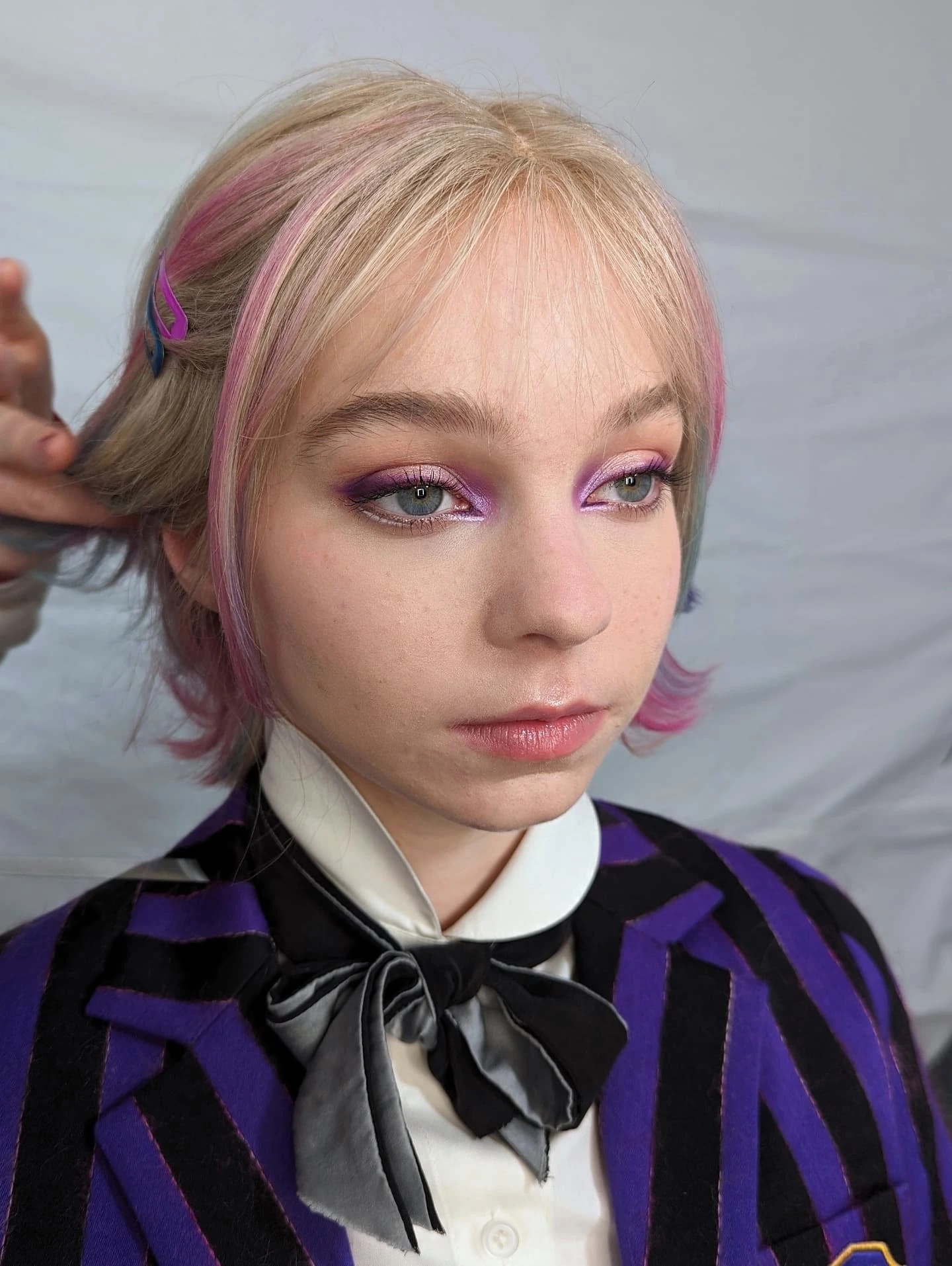 Вы че дауны и настолько очевидную хуйню не выкупили? Энид лесбуха и ревнует венсдей. Радужные волосы это буквально радужные пидораские волосы. Это история о ревности и будущем камингауте в конце сезона скорее всего.